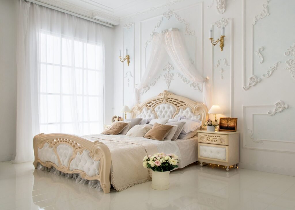 French style is all about finesse, flamboyance and elegance. White or cream bare walls or printed blossoms with gold borders, or the iconic fleur-de-lys patterns, this style is clean and neat. Delicate and refined patterns are used to accentuate this rich style. Enchante!